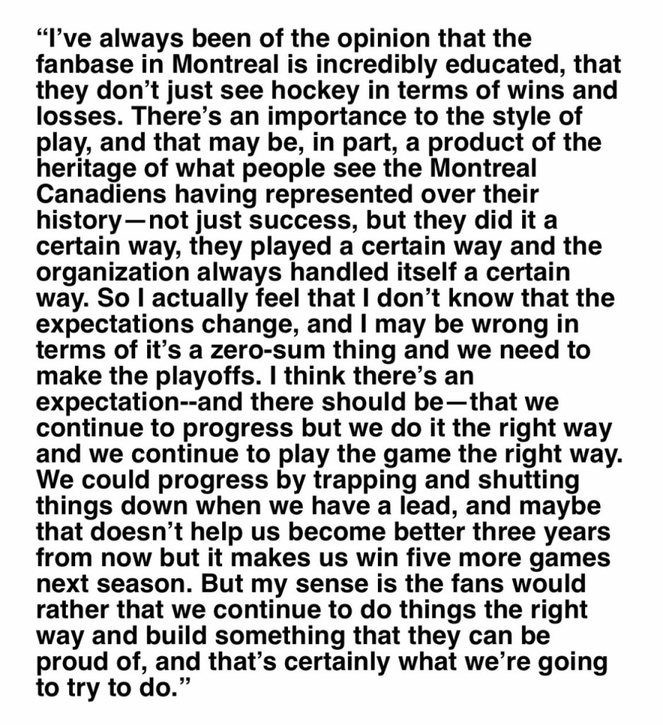 You get the sense from this presser that this will be an active summer for the Montreal Canadiens. It’s coming.