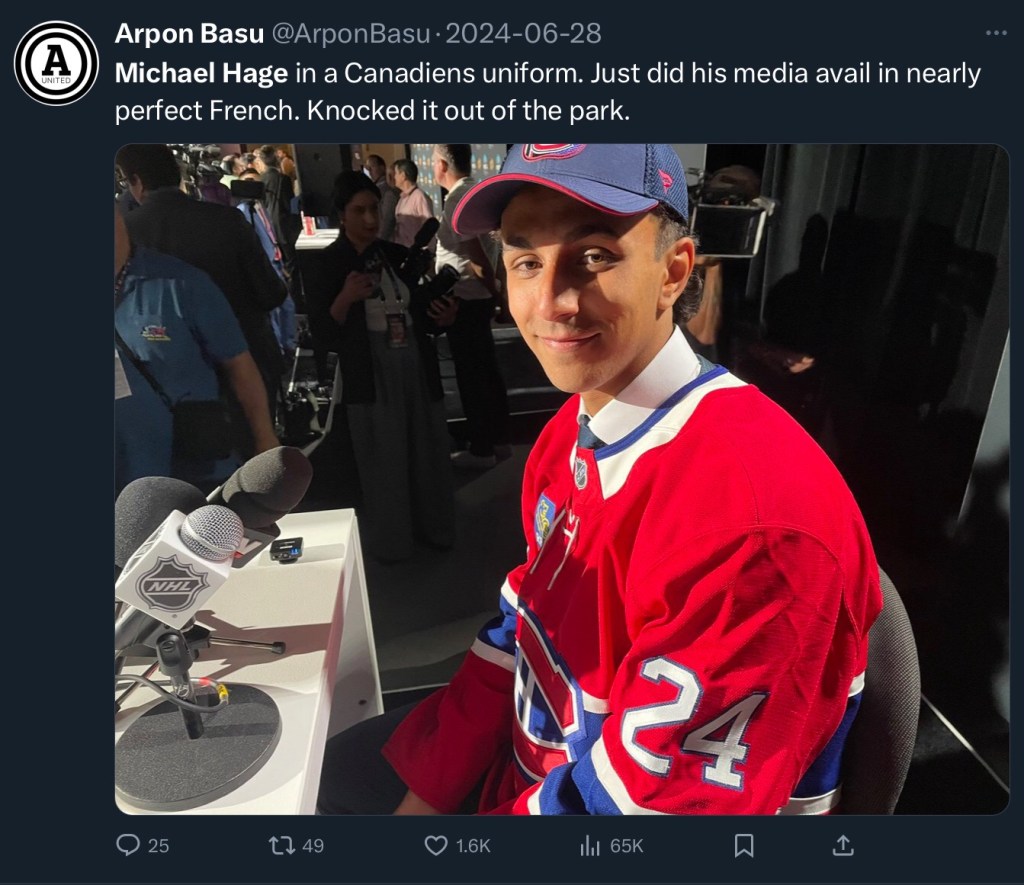 In their first draft, the Habs traded picks and a young defender to land Kirby Dach. In their second draft, they traded more picks to acquire Alex Newhook. In their third draft, HuGo traded picks to move up and take Michael Hage.
