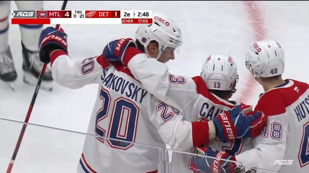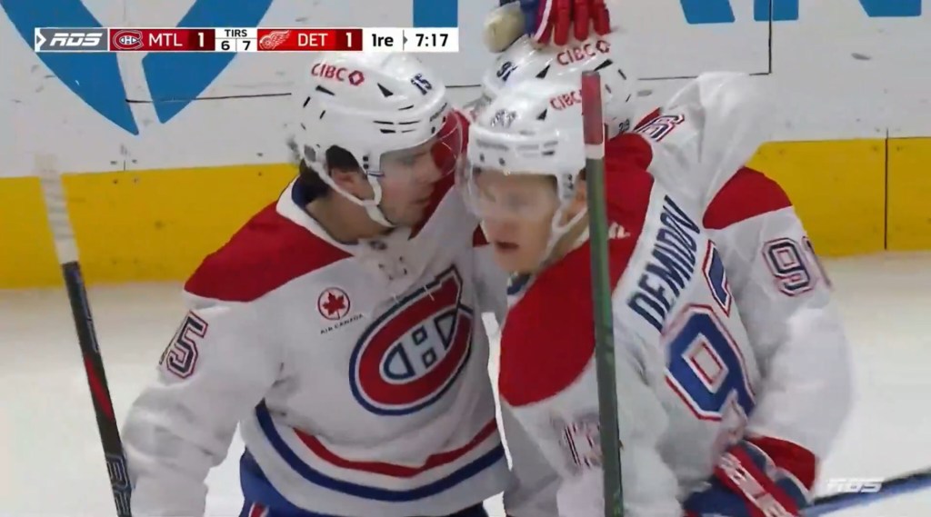 After being the most invested player on the top line in Toronto, Juraj Slafkovsky was rewarded with a power play goal in Detroit. And you wouldn’t believe it but the scoring sequence didn’t involve one drop pass.
