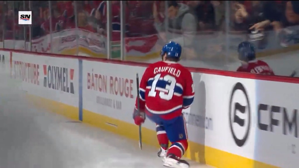 Seven minutes into the game, Nick Suzuki delivered a beautiful pass to send Caufield in on a breakaway, and Cole got it by the tender for his 10th goal of the season.
