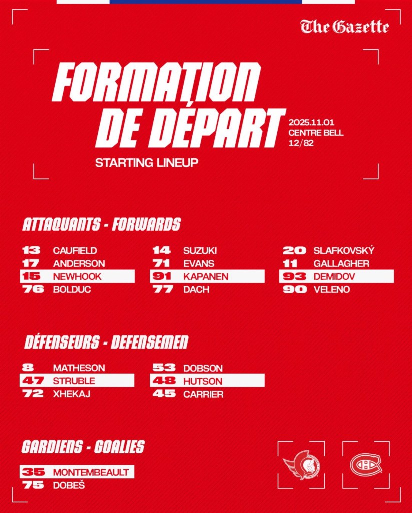 The Montreal Canadiens kicked off a 13-game November on Saturday night by greeting the Ottawa Senators at the Bell Centre. The result was a 4-3 overtime win.