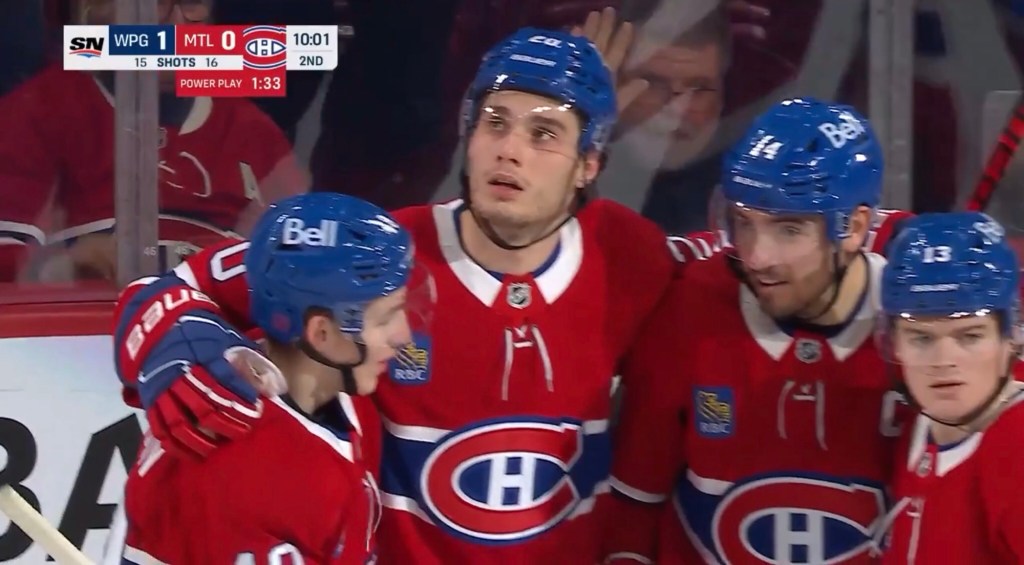 On Wednesday night the Montreal Canadiens greeted the Winnipeg Jets at the Bell Centre. The coach had not changed his roster dramatically – Davidson was in for Florian Xhekaj and Dobes was starting – but he did put the lines in the blender. The result was a 3-2 shootout win.
