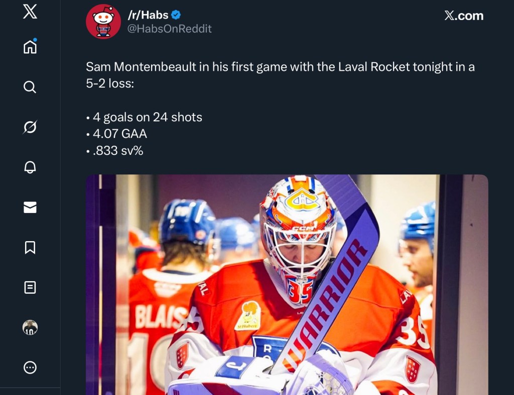 Speaking of struggles, Sam Montembeault played his first conditioning stint game last night and it did not go well.