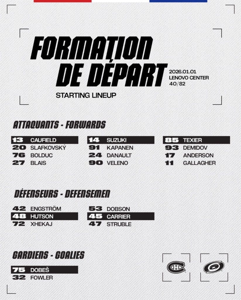 On New Years Day, the Montreal Canadiens were in their third game of a five-game road trip, this one in Carolina to face the Hurricanes. The result was a 7-5 win.
