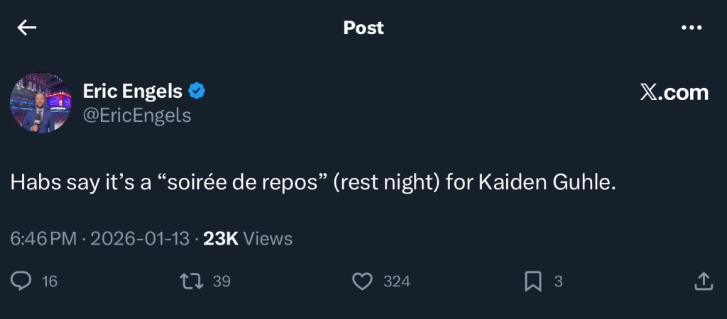 I know pundits were saying how much the Canadiens were missing Guhle while he was away. That feels to me like your three-week high school boyfriend telling you how much he misses you after the breakup. How much can you miss someone who’s not consistently been around?