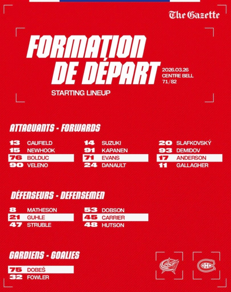 The Habs start a five-game road trip on Saturday. I’m hoping for a Reinbacher call up. Struble has looked good – turns out playing with Hutson can do that for you – but they need to know what they’ve got in Reinbacher, and he needs a taste.