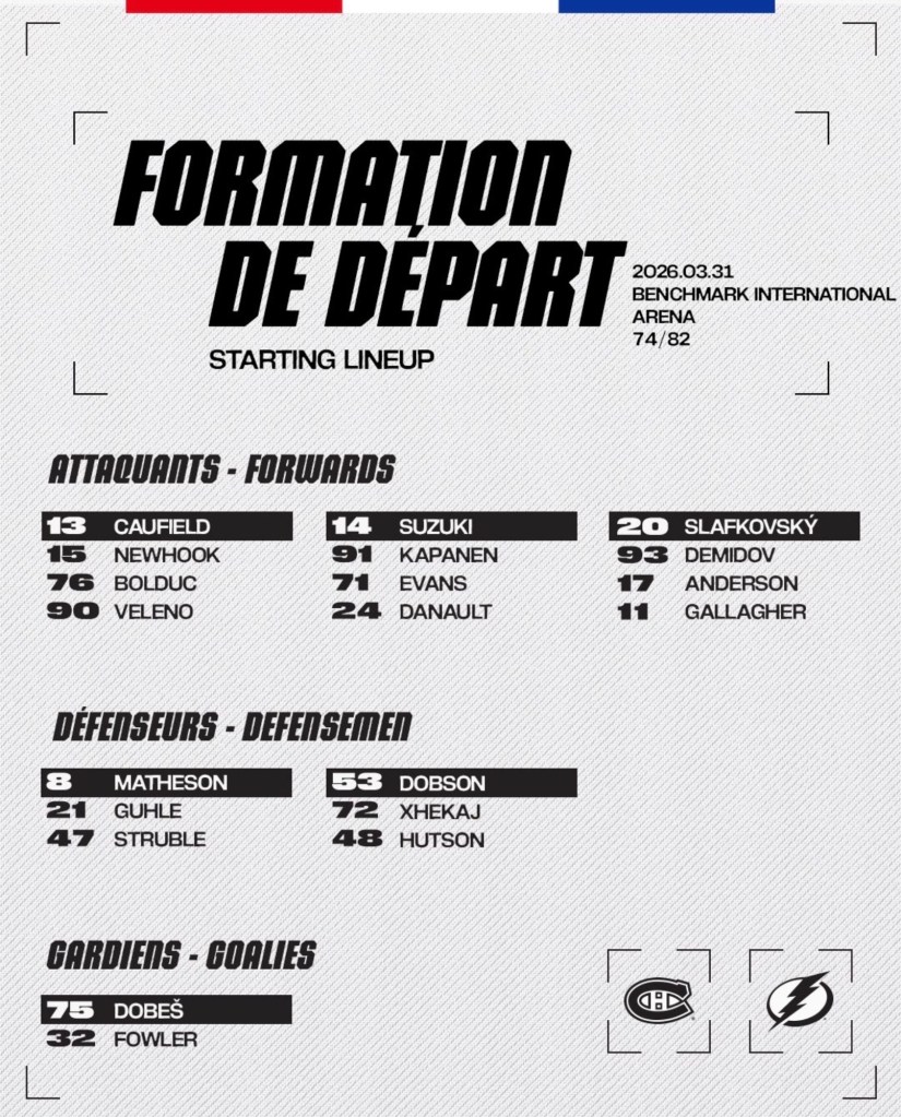 Caufield is chasing 50 goals and got his 47th against Tampa. Suzuki is chasing 100 points and got his 92nd when he scored the Habs fourth goal. Slafkovsky is chasing 30 goals and scored his 29th on the opening goal. That’s just the top line.
