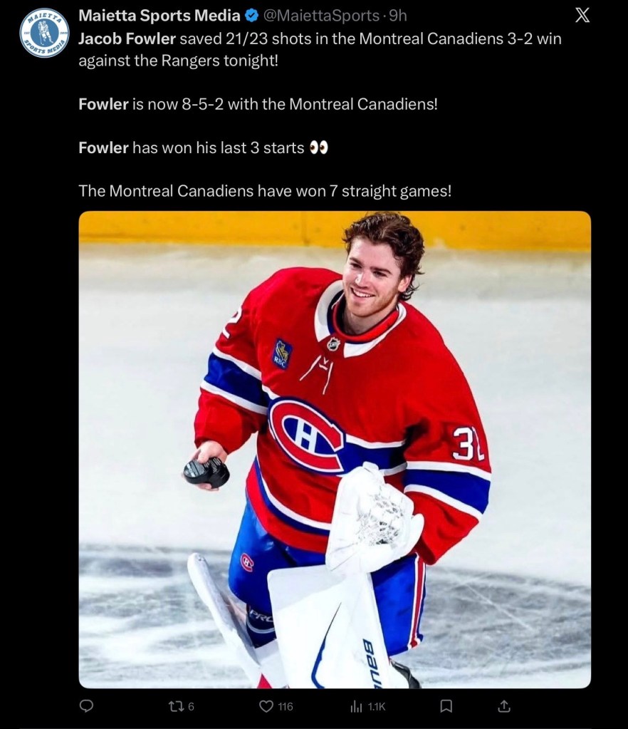 Where would the Canadiens be in the standings if they had even average goaltending earlier in the season? Now they’re in a place where they can roll out their “back-up” for two of three games.