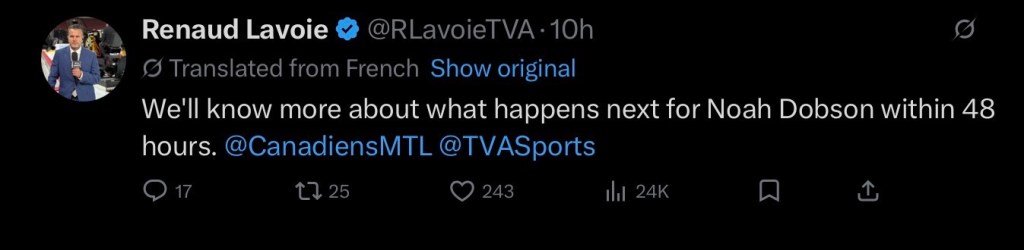 If Dobson is ready by Wednesday, that could be a real boost for the Habs.